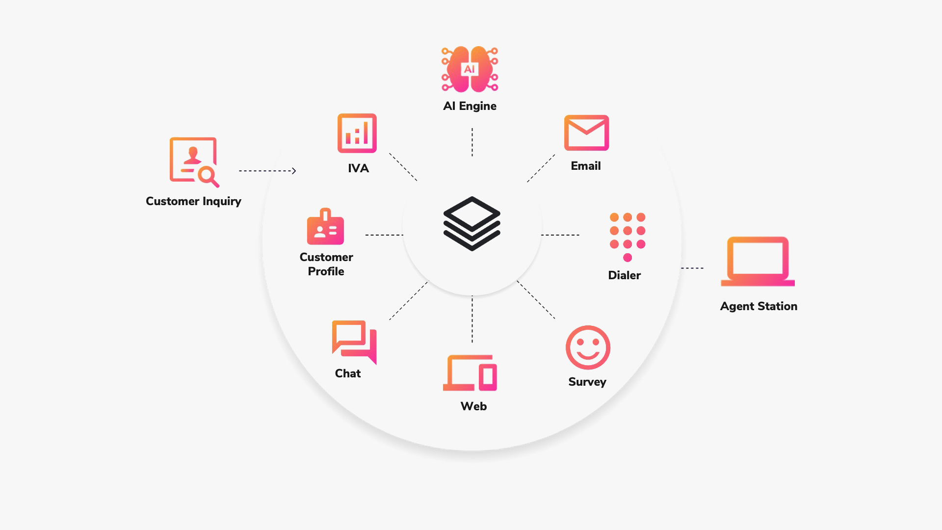 Links customer data from sources such as AI and other technologies including ACD, WFM, and more. This delivers a true omnichannel encounter that supplies a holistic view of a connected customer journey.